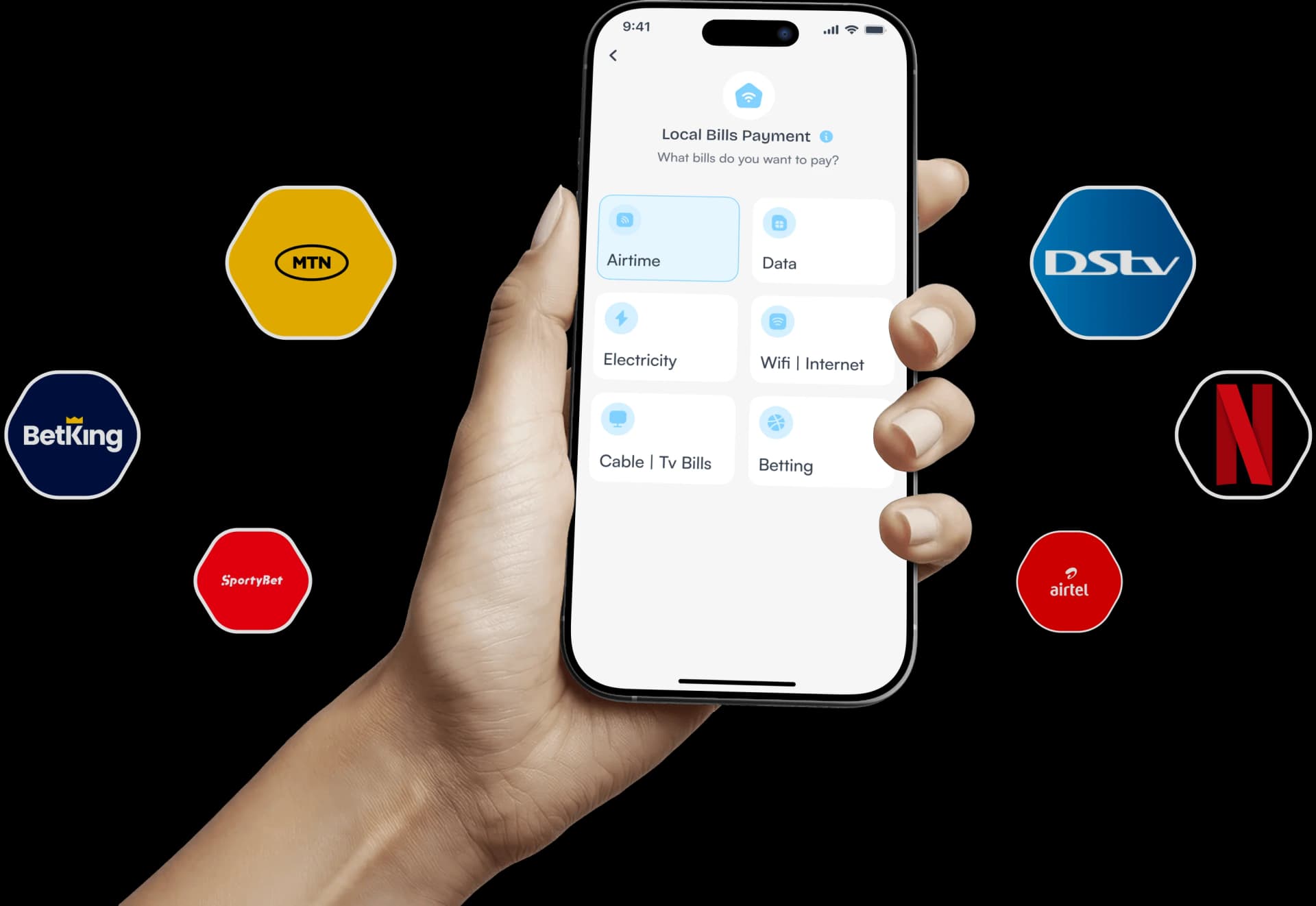 Pay airtime, data, electricity, cable TV and internet subscriptions from one app. Also fund any betting account easily. Multiple billers supported, no need to switch platforms.